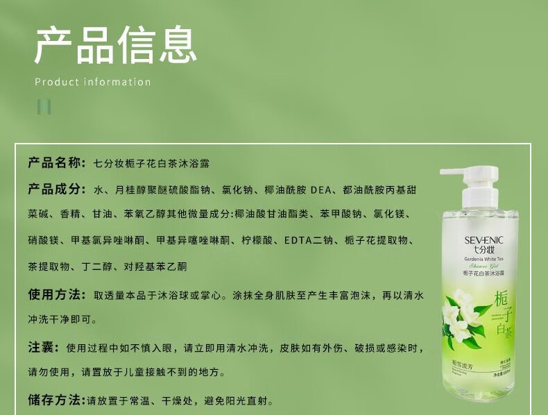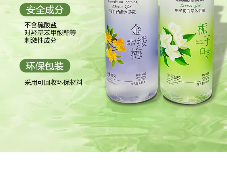 七分妆新品精油香氛沐浴露680ml 栀子白茶男女沐浴乳清爽洁净持久留香 【栀子白茶+金缕梅】各一瓶