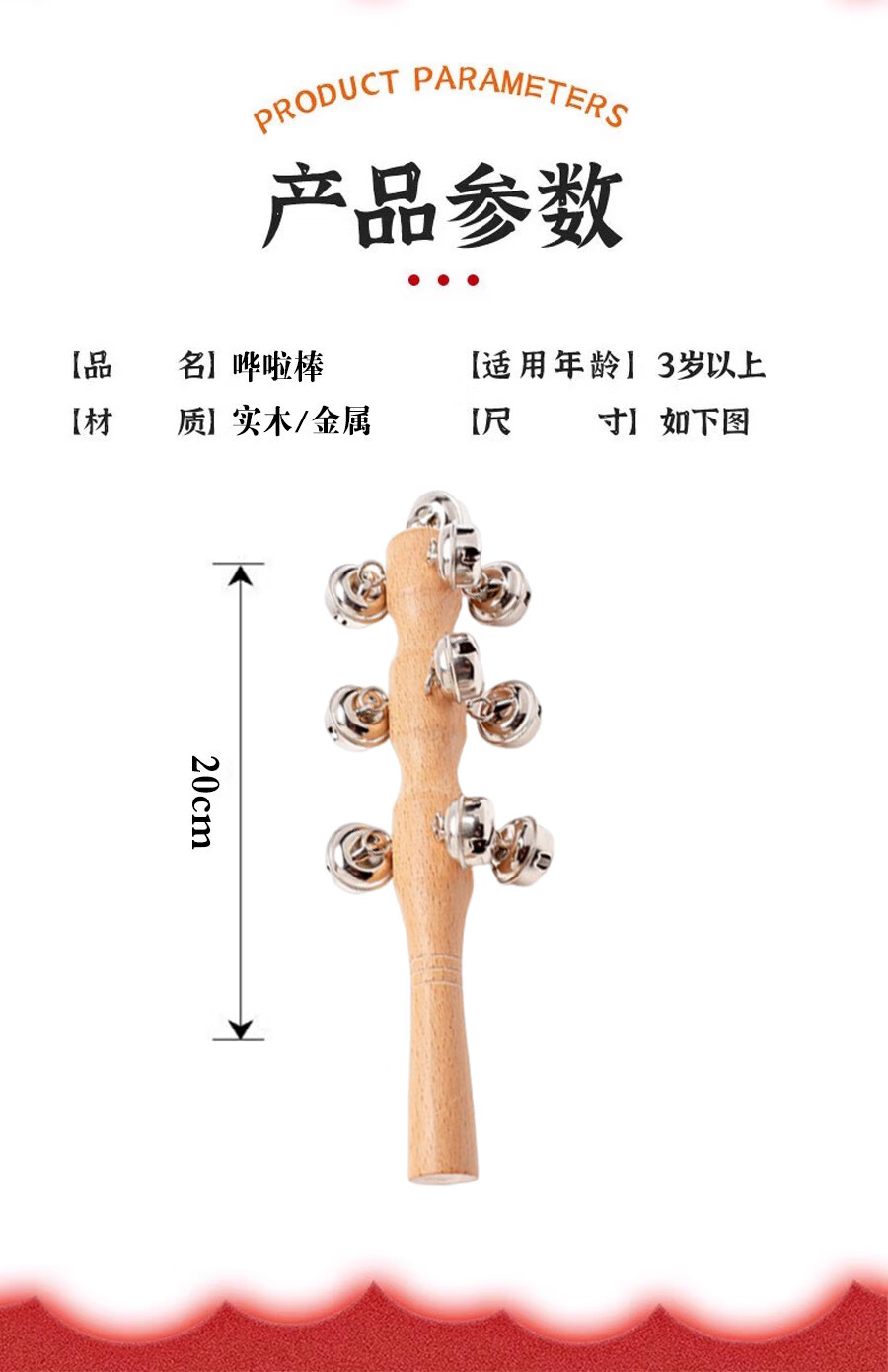 梦若羽(MRYU)黄铜铃棒老式手工木质黄铜棒铃铛哗啦棒牛皮羊皮拨浪鼓婴儿 13铃哗啦棒一支装