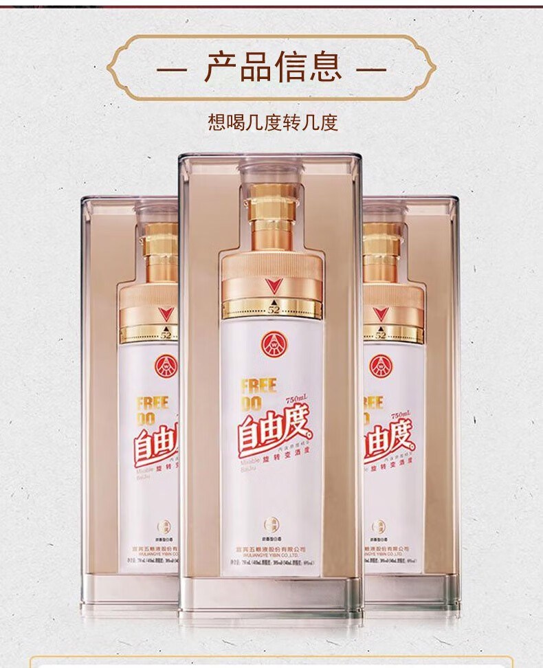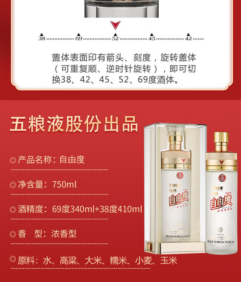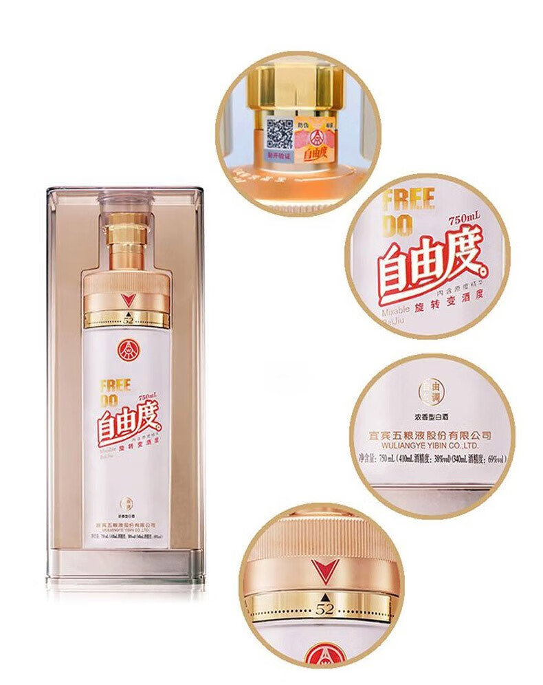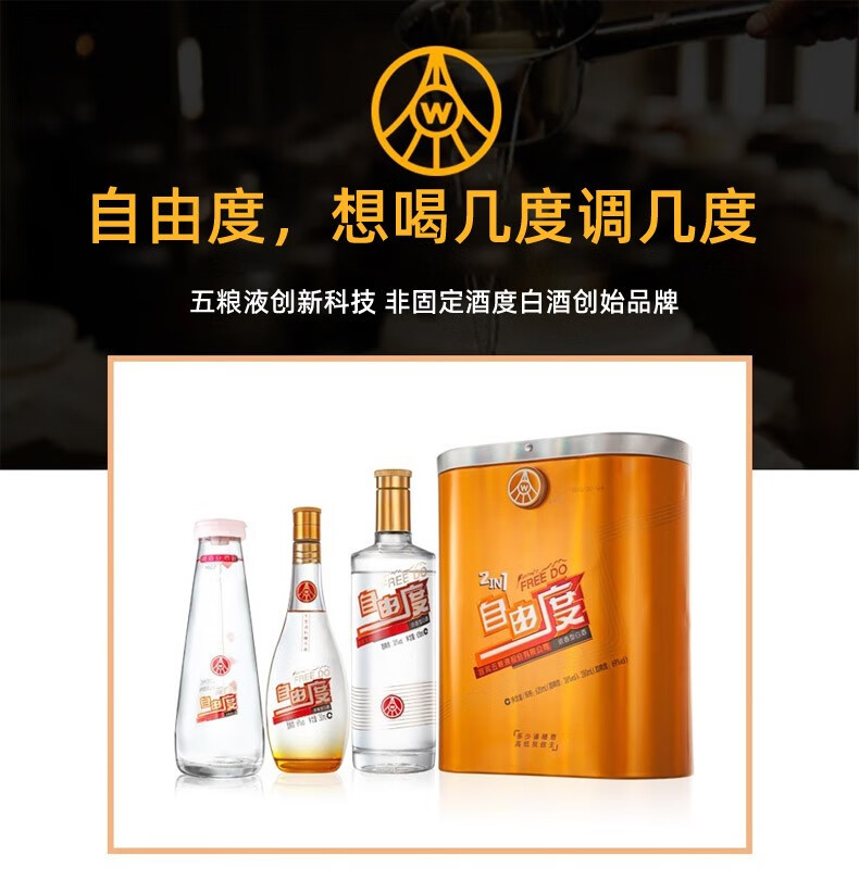 五粮浓香五粮液股份出品 五粮液自由度 38度-69度浓香型白酒 宴请送礼酒水 38度 750mL 1瓶 第二代自由度