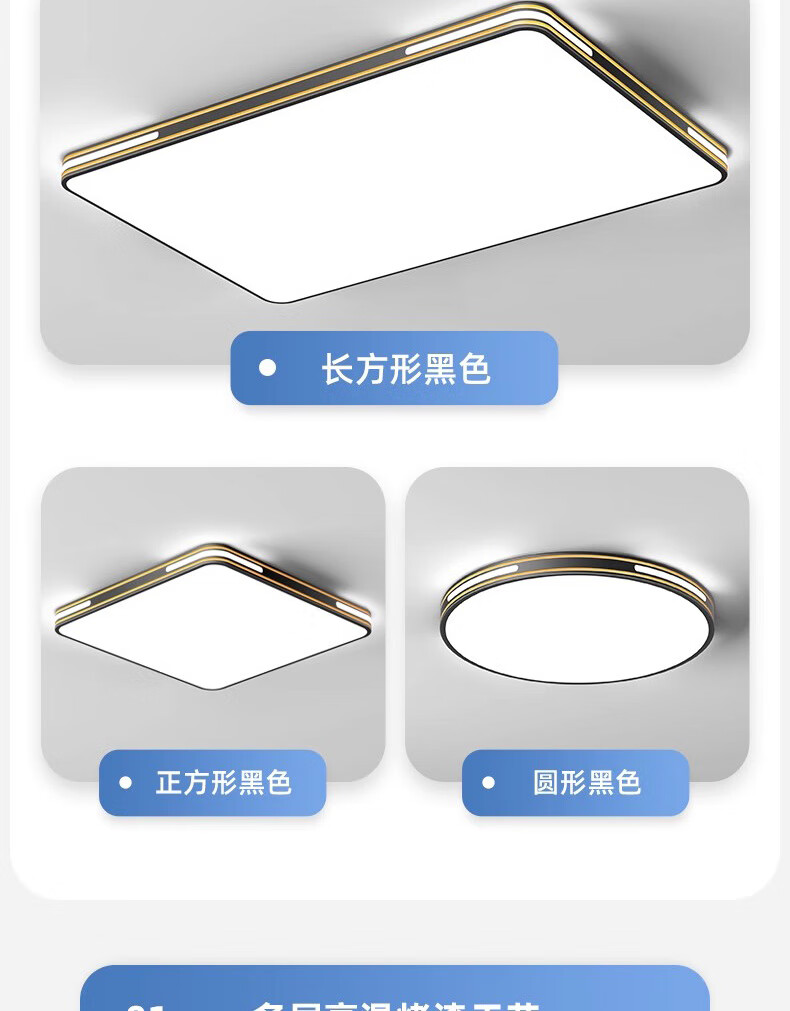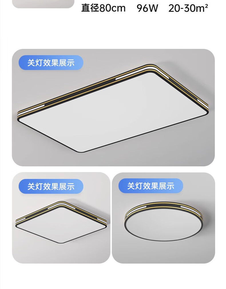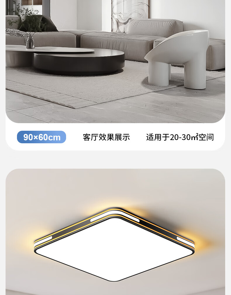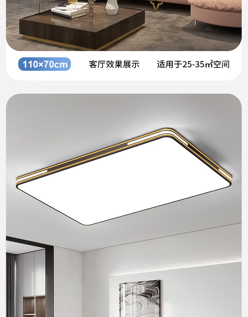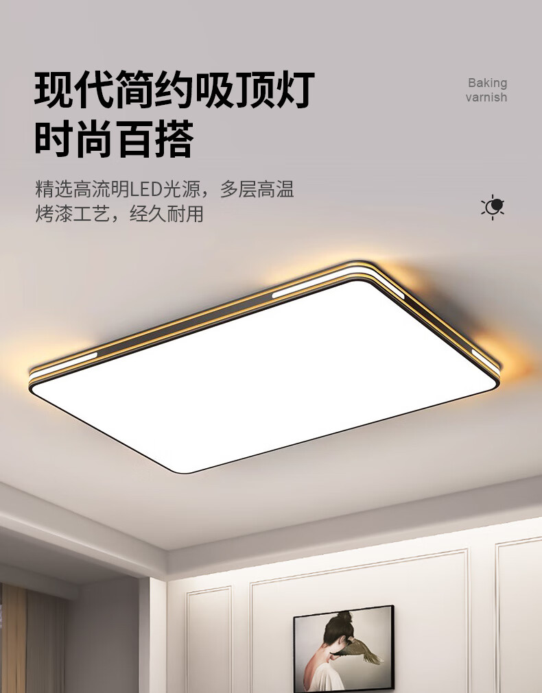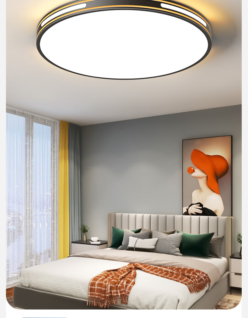 昆迪卡护眼超薄吸顶灯客厅灯长方形大厅卧室吸顶灯房间简约大气书房中山 黑金50cm园48瓦 三色变光