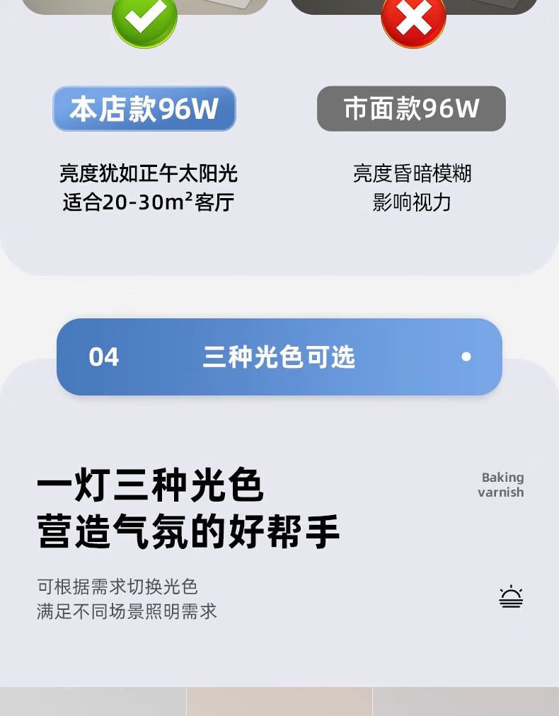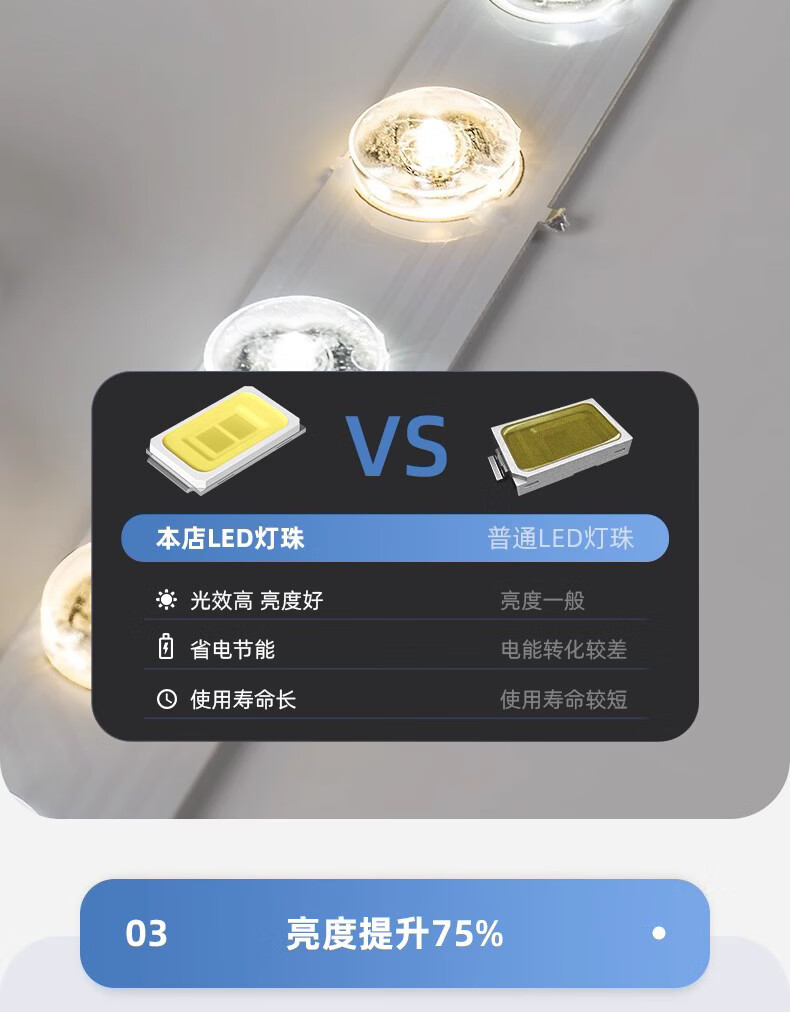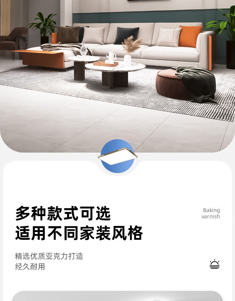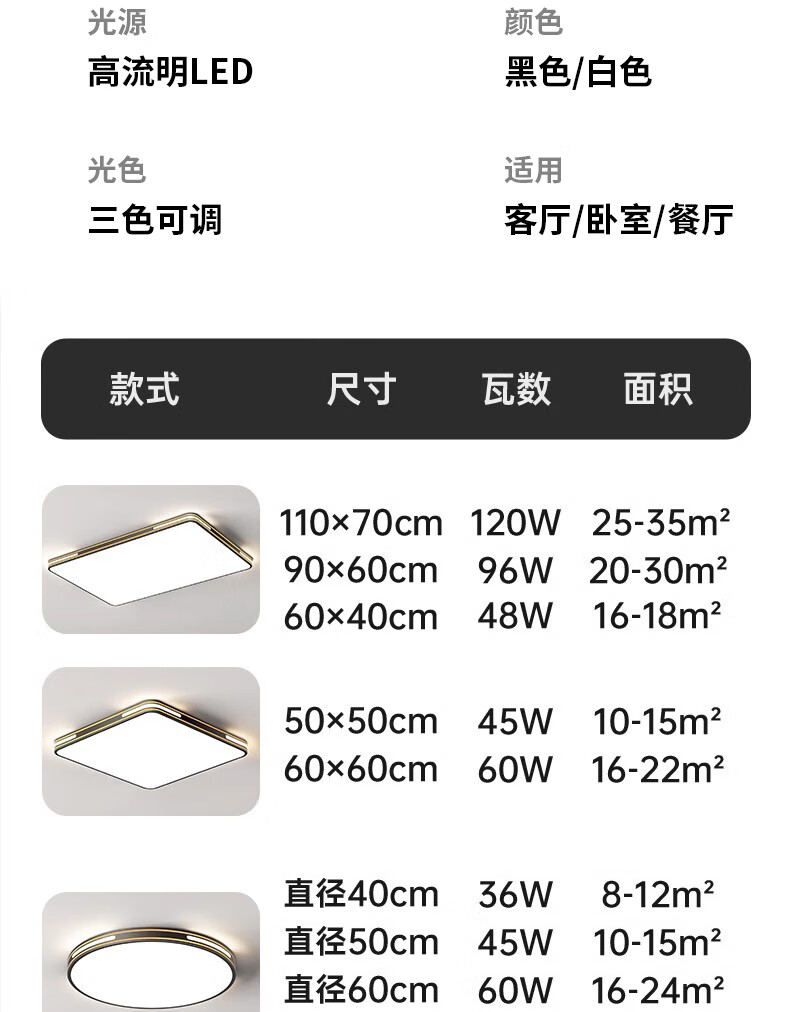 昆迪卡新款led吸顶灯简约现代大气高亮长方形客厅灯餐厅卧室书房节能灯 白圆40cm三色变光2*36w