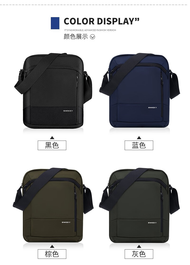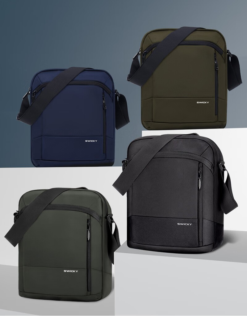 SWICKY瑞士单肩包男士休闲斜跨包通勤百搭轻便大容量商务运动男包挂包男 大号经典黑色【可放11英寸平板】