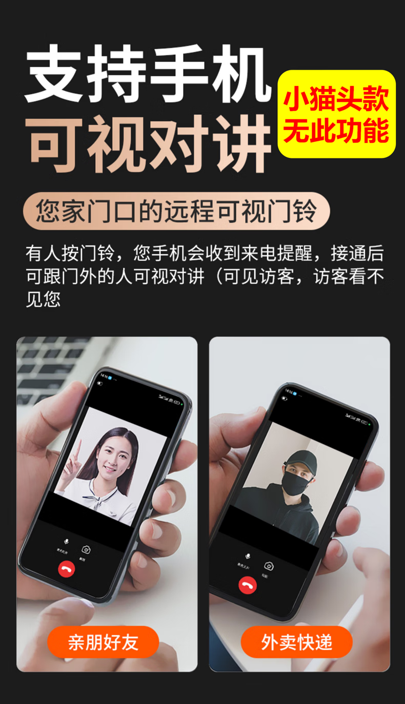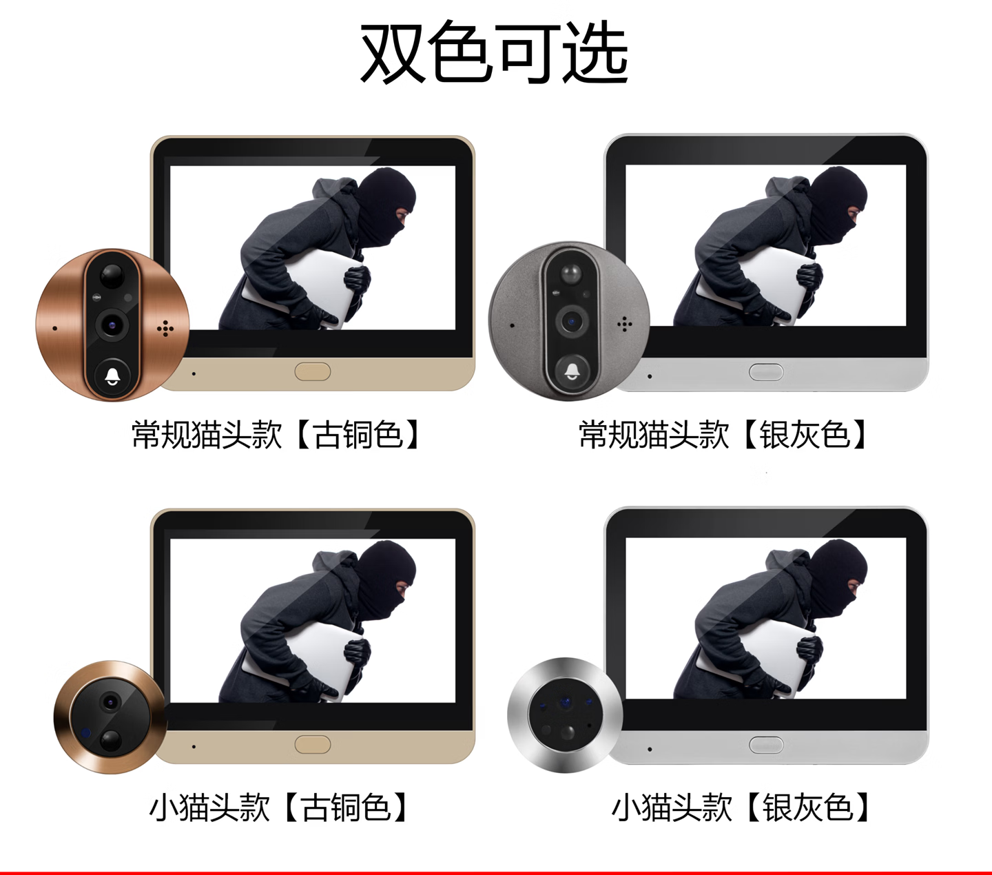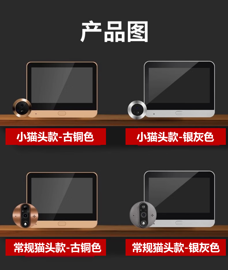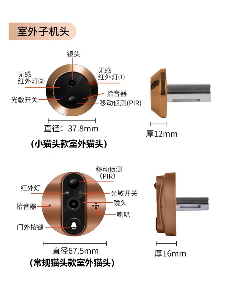 佳博盾智能猫眼摄像头监控防盗门无线电子可视猫眼带屏幕可视门铃带显示幕手机远程入户门门镜录像免打孔 【小猫头款-古铜色】300万像素 无内存(不支持录像)