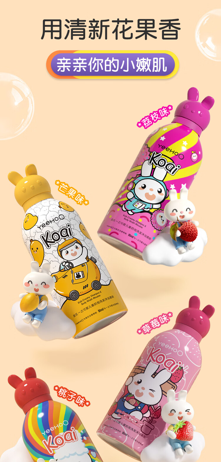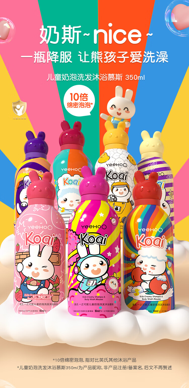 英氏儿童沐浴露洗护二合一婴儿宝宝洗发沐浴慕斯小奶泡350ml【拍2划算