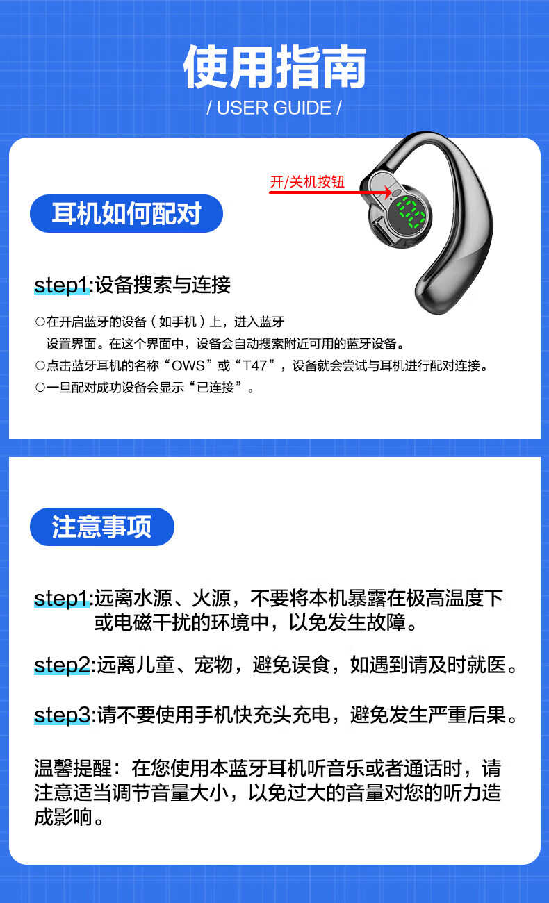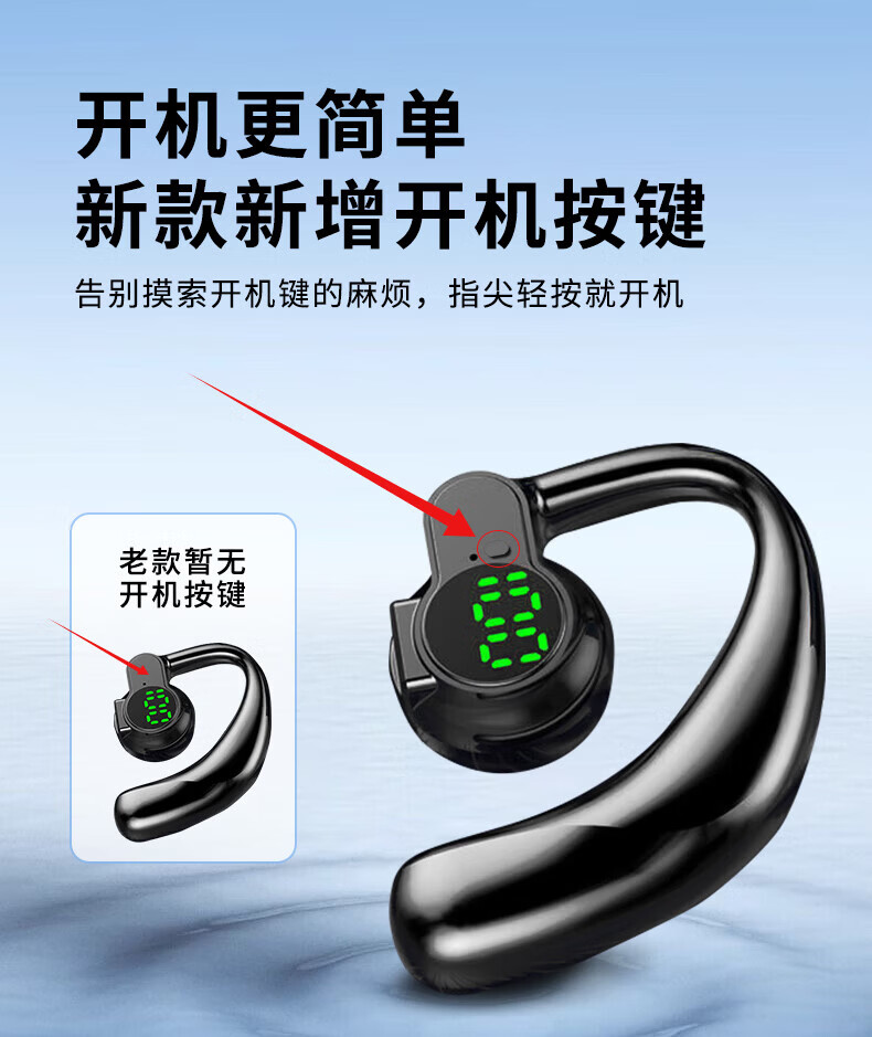 【厂家直发】UMUSICVAN数显单耳无线蓝牙耳机 超长续航 高清通话 挂耳式舒适不入耳运动健身开车 【简约白】数显挂耳式单耳
