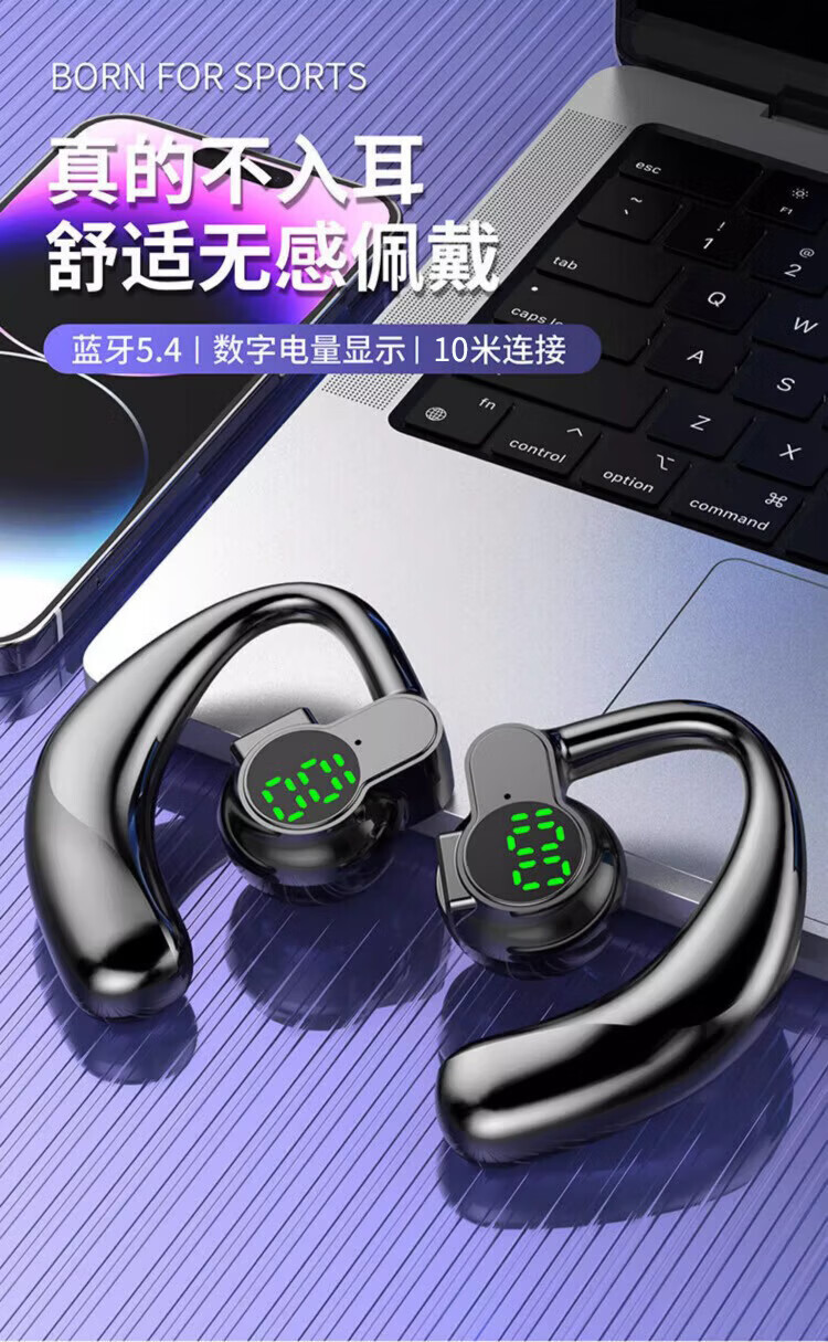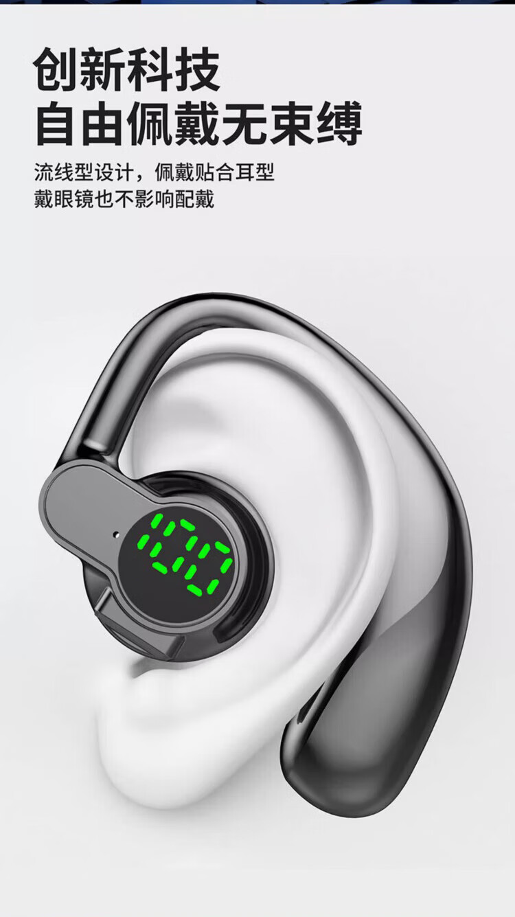 鑫羽音【甄选好物】新款无线蓝牙耳机不入耳气骨 白+超长续航+超清通话 蓝牙通用