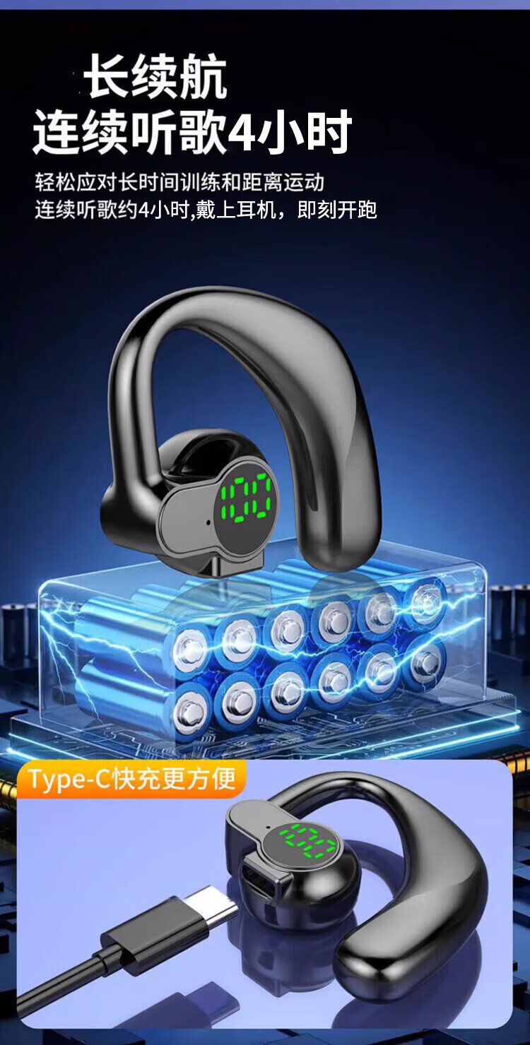 鑫羽音【严选好物】 无线蓝牙耳机气骨传导开放不入耳 新款挂耳式超长续 黑色【左右耳可戴-CVC通话降噪】 手机通用