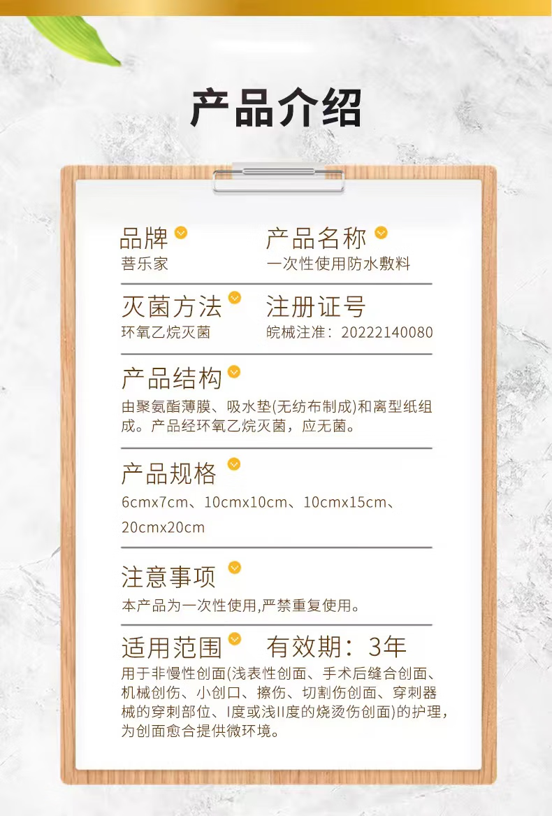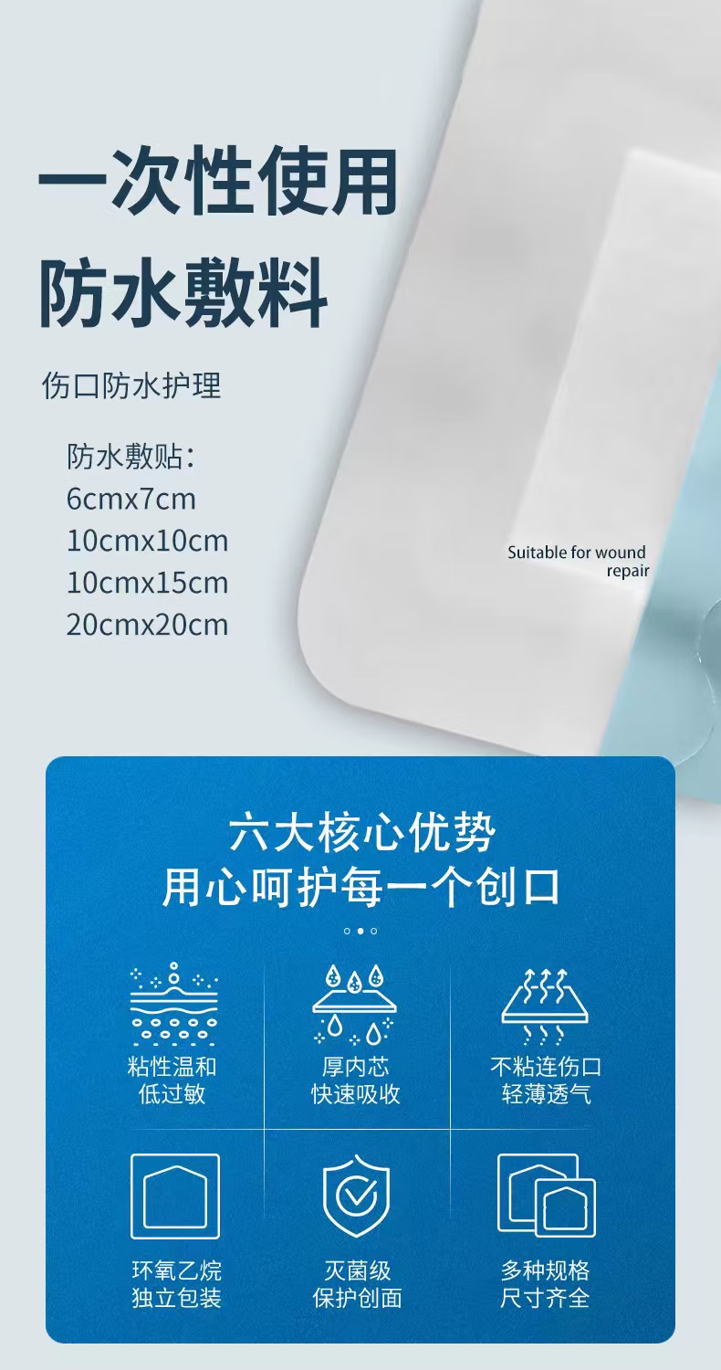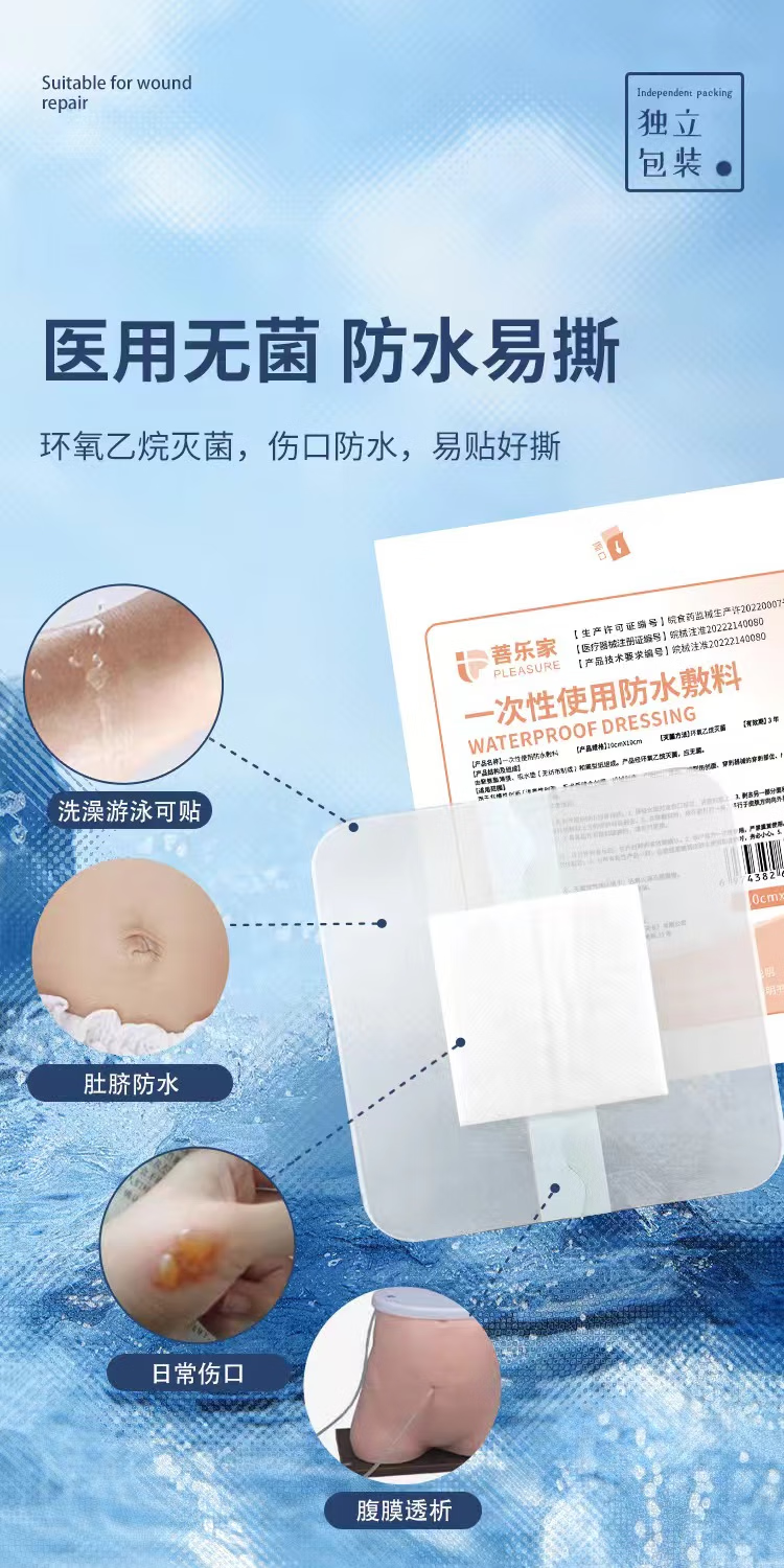 菩乐家医用防水无菌敷贴伤口洗澡婴儿游泳肚脐贴甲状腺术后腹透保护贴膜 20*20cm10片/盒腹透洗澡