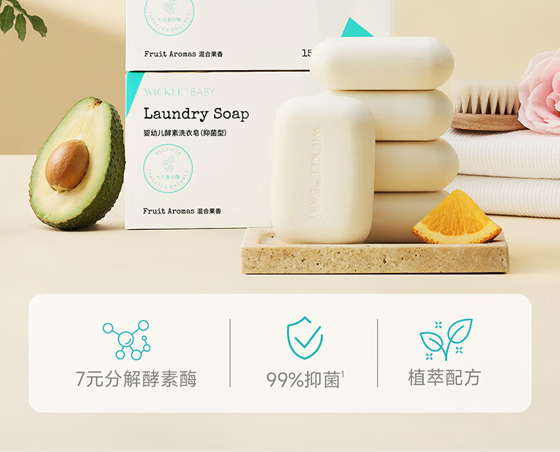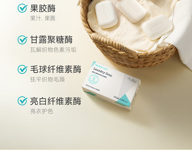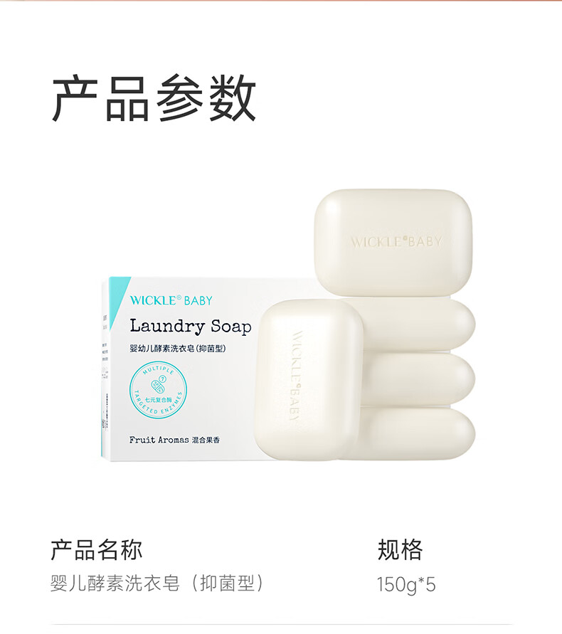WICKLE婴儿新生宝宝婴幼儿专用肥皂香皂内衣皂抑菌洗衣皂150g*5块