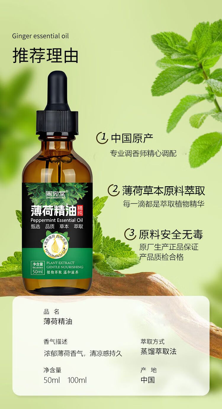 薄荷精油驱虫天然驱蚊驱鼠提神醒脑滴鼻液清凉纯油薄荷油驱虫 100毫升薄荷精油+1个喷壶
